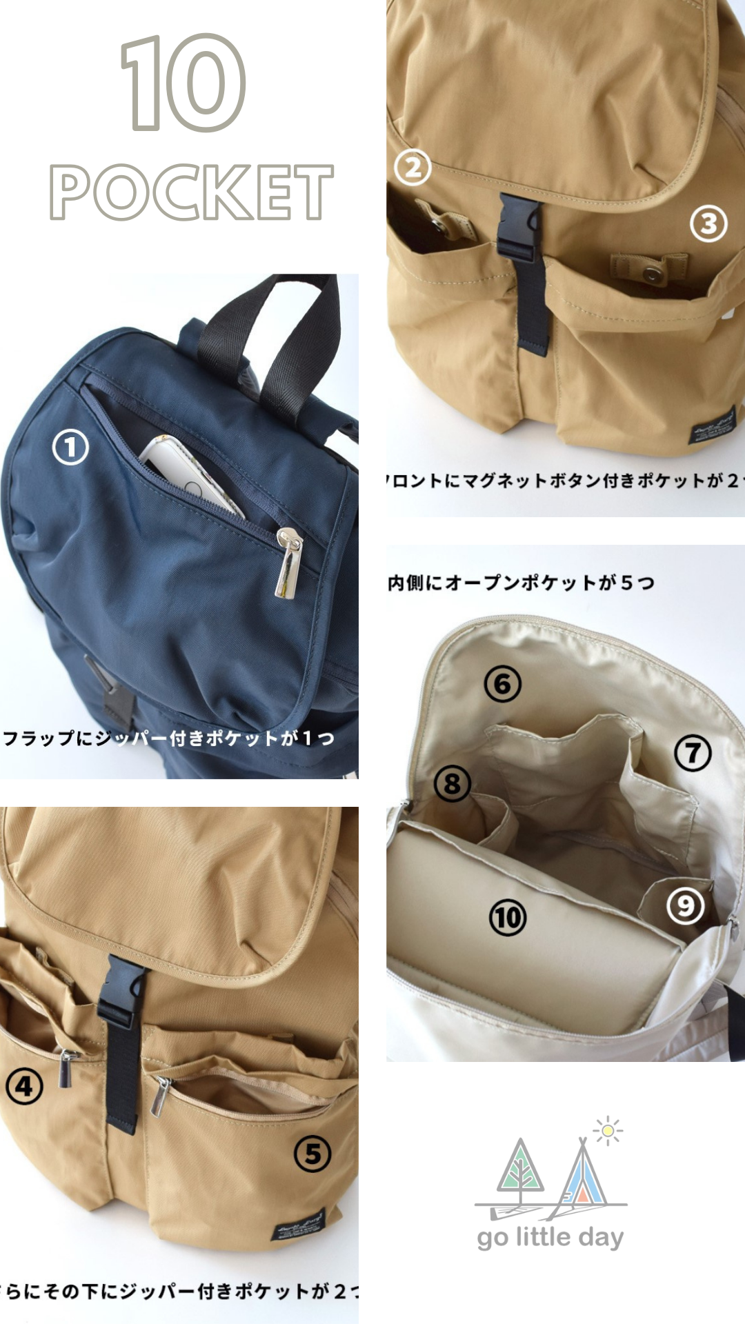 口袋數:10(5個外部/ 5個內部)